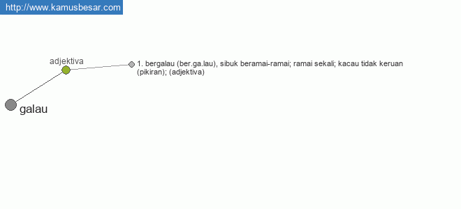 Galau : 1. ber·ga·lau a sibuk beramai-ramai; ramai sekali; kacau tidak keruan (pikiran); ke·ga·lau·an n sifat (keadaan hal) galau. sebuah keadaan dimana kejiwaan seseorang yang memiliki rasa kurang percaya pada sahabat-sahabatnya,diamana saat memiliki sebuah masalah yang cenderung pada hal percintaan, orang tersebut tidak mempercayai saran-saran dan keberadaan orang-orang terdekatnya, cenderung lebih mencintai kesendirian, kesakitan dan ketersesatan, merasa tidak (kurang) di perhatikan/dicintai oleh orang-orang di sekitar, mencari perhatian dan merasa patut di kasihani dengan melakukan aktifitas "update status" pada situs jejaring sosial dengan kalimat-kalimat yang bermakna sakit hati dan kekecewaan, tidak percaya sepenuhnya pada rencana TUHAN. ini sih menurut pandangan saya dengan berkaca pada diri sendiri ketika saya tersakiti oleh seseorang, benar atau salah silahkan komentar, rasa kurang percaya tersebut dimana seseorang lebih memilih mencari perhatian dan pembelaan terhadap kesakitan yang dia alami bukan dari orang-orang sekitar, keadaan galau itu di jadikan kosumsi publik agar mendapat perhatian